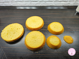 Der Kuchen wurde in einer Backform für große Puppen gebacken. Ich habe einen Eierlikörkuchen mit Himbeerganache gefüllt und mit einer Zartbitterganache eingestrichen. Backt den Kuchen nach eurem Geschmack, ja nach Lust und Laune.