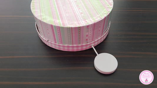 Mithilfe eines Topfdeckels habe ich mir die Position der Torte markiert und dann die Position der Tasten festgelegt. Das Cakeboard etwas trocknen lassen.